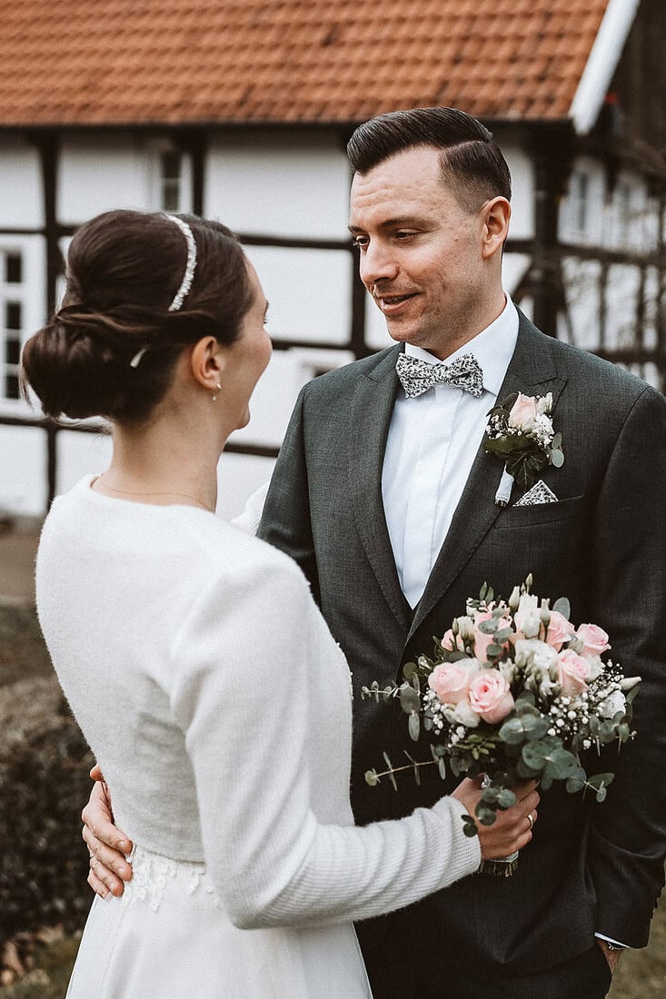 Die Hochzeit von Christine und Markus in der Alten Vikarie in Oelde-Stromberg war für mich der perfekte Start in die Hochzeitssaison 2025. Mitte März war es zwar noch richtig kalt, doch die beiden hielten tapfer durch und strahlten vor Glück. Der Tag begann mit einem emotionalen First Look und einem kurzen Paar-Fotoshooting, bei dem trotz der Kälte wunderschöne Aufnahmen entstanden.