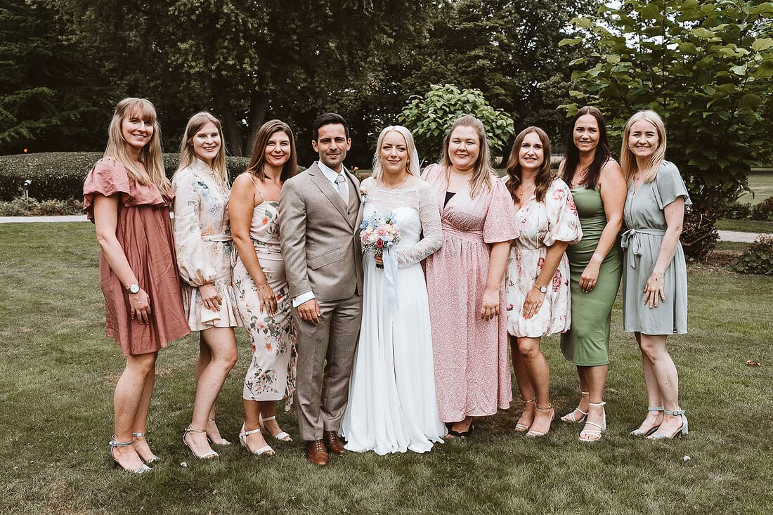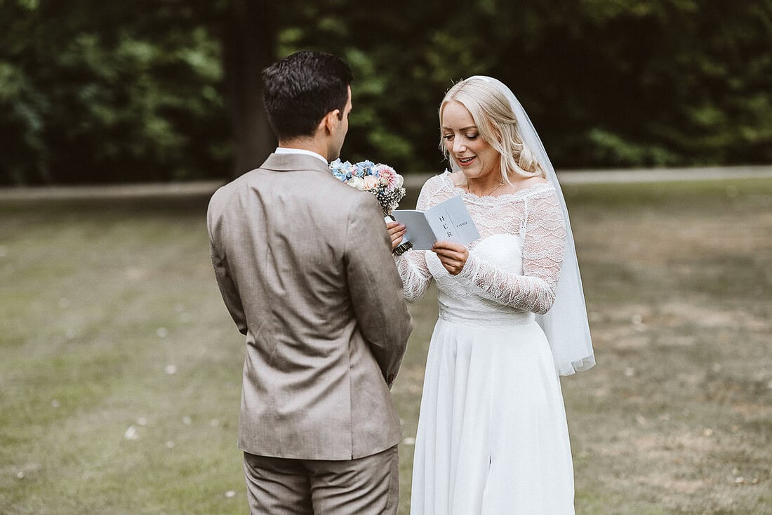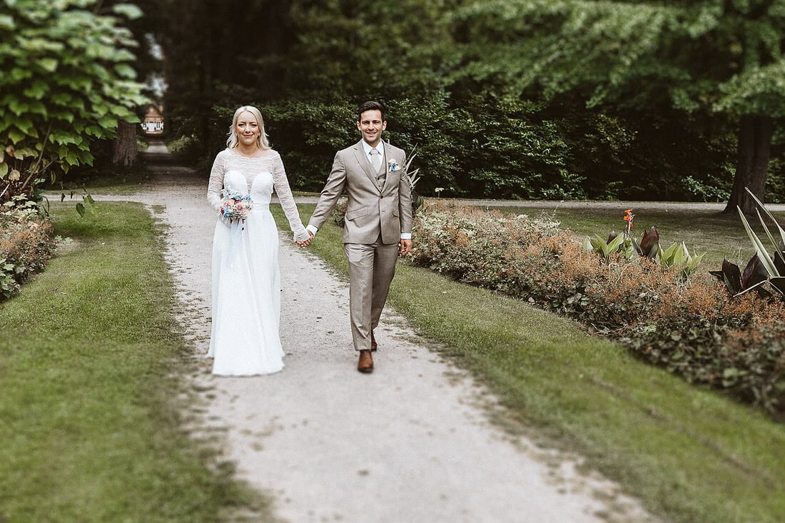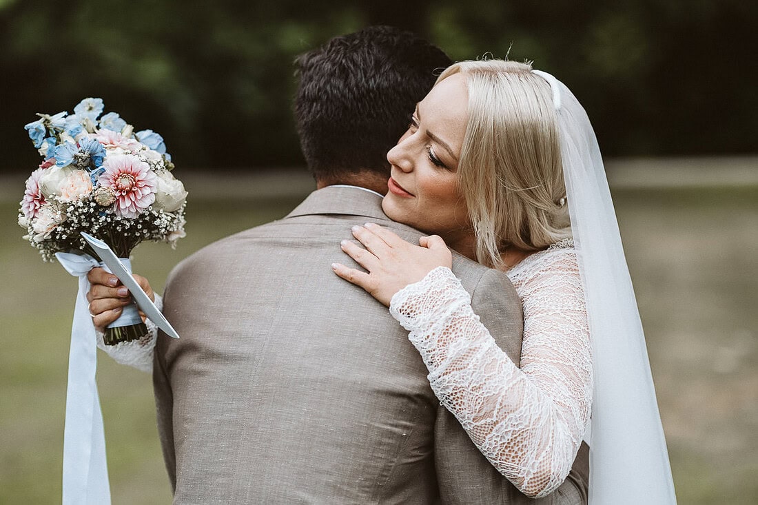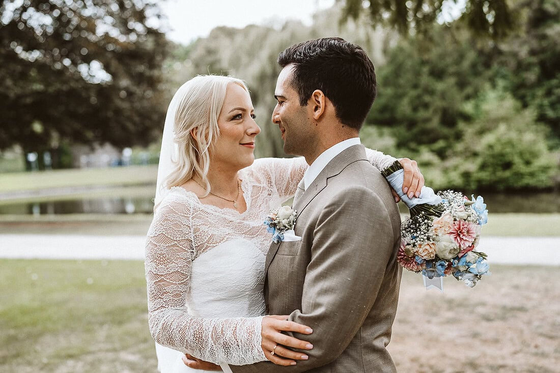 Die Hochzeit von J&J im August auf Burg Hülshoff in Havixbeck war ein Tag voller Emotionen, Geschichte und wunderschöner Momente. Die weitläufige Parkanlage rund um die Burg bot die perfekte Location für ein entspanntes Paar-Fotoshooting. Zwischen alten Bäumen, farbenfrohen Blumen und ruhigen Wegen fanden wir viele wundervolle Plätze – und obwohl der Park öffentlich ist, verläuft es sich so gut, dass man oft ganz ungestört fotografieren kann. Das besondere Highlight des Paar-Fotoshootings war das gegenseitige Eheversprechen, das sich J&J unter freiem Himmel gaben. Dies fotografisch festzuhalten war unglaublich berührend und ein Moment, den ich nicht vergessen werde.