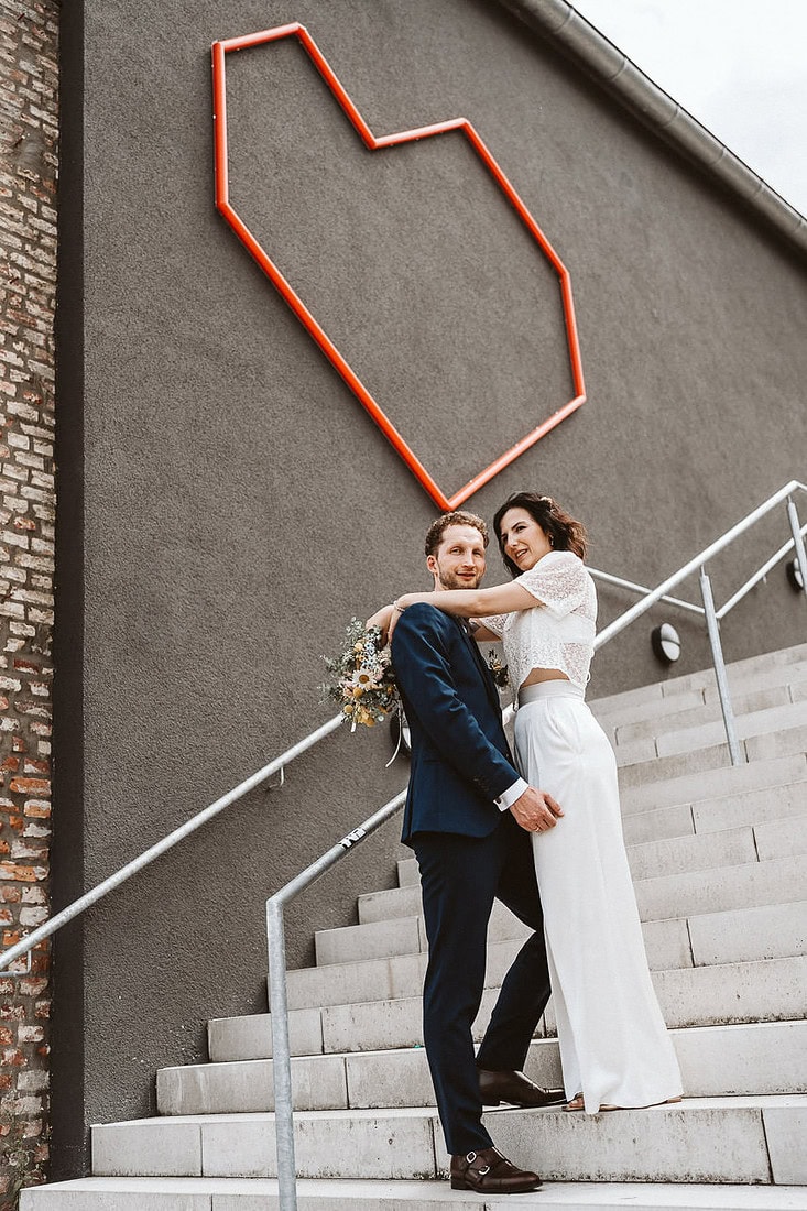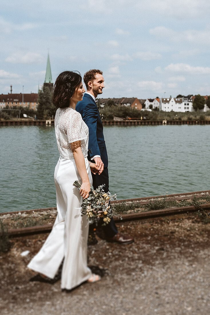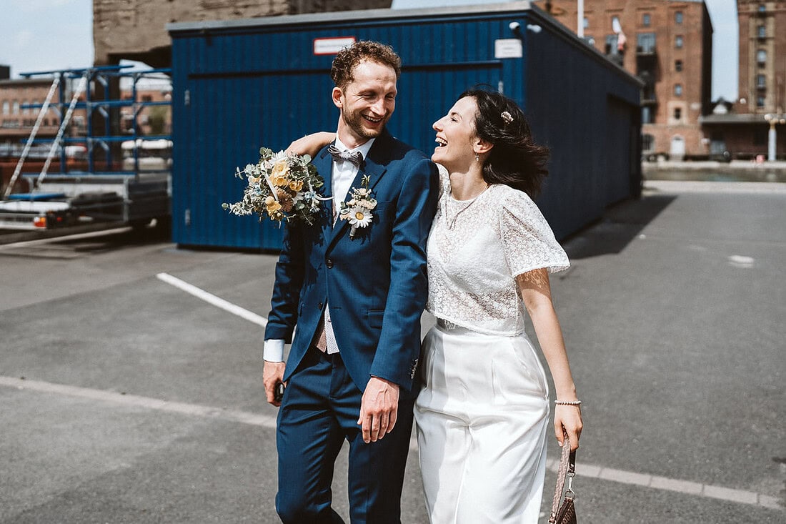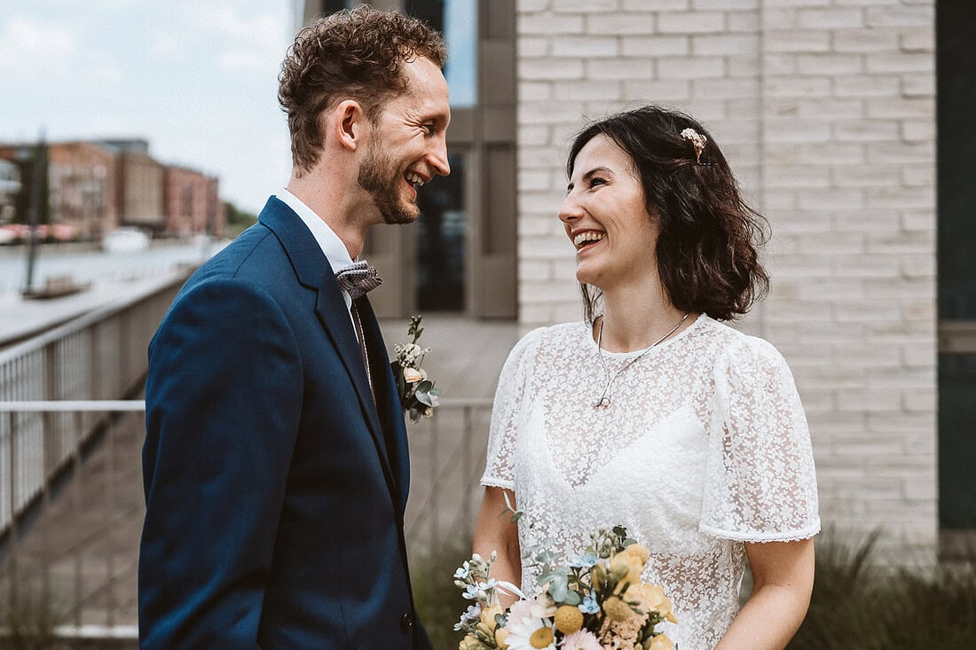 Die Hochzeit von Karin und Christoph im Juli in Münster war eine wunderschöne, urbane Sommerhochzeit bei strahlendem Sonnenschein und heißen Temperaturen. Sowohl die Trauung als auch die Feier fanden im esCape im Hafen von Münster statt – eine Location mit besonderem Flair. Vor der Trauung nutzten wir die Gelegenheit für ein Paar-Fotoshooting im Hafen. Rund um die B-Side gibt es viele spannende urbane Ecken und moderne Architektur, die sich perfekt für authentische und lebendige Hochzeitsfotos eignen.