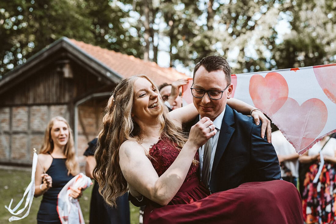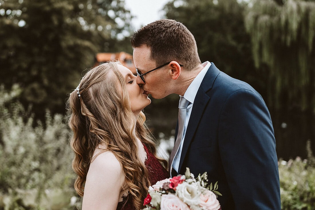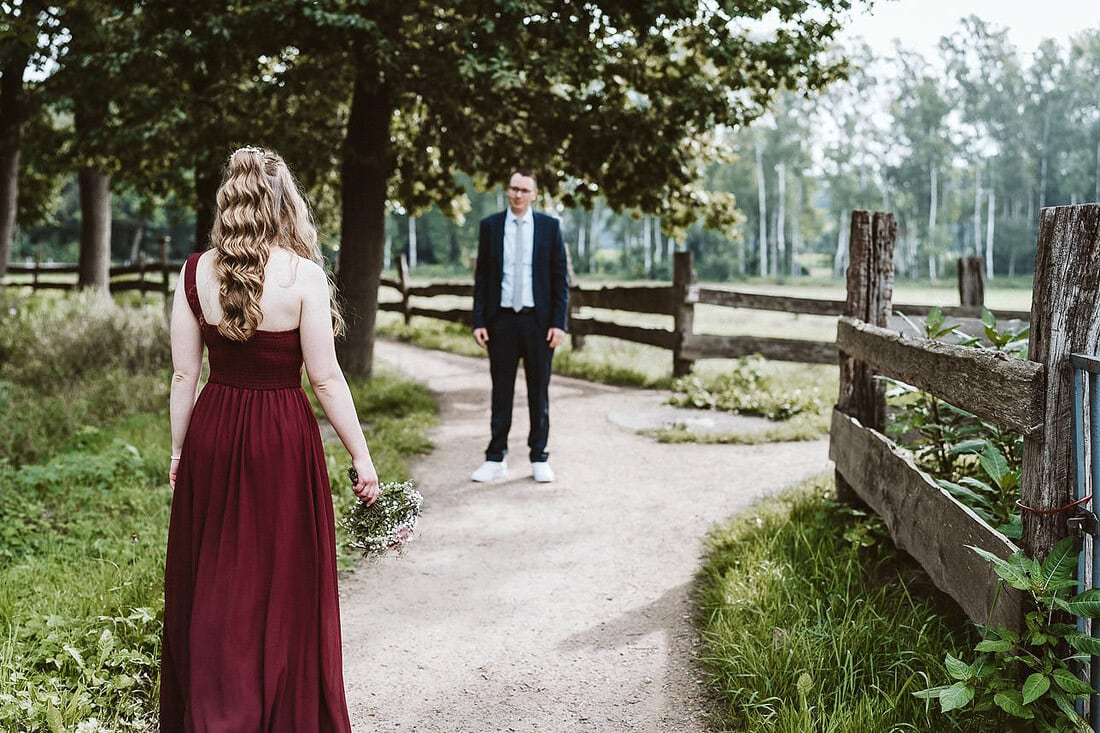 Die Hochzeit von K&J im historischen Bürgerhaus in Marienfeld war ein wunderschöner und sonniger Sommertag, der mit einem entspannten Paar-Fotoshooting am Morgen begann. Rund um das Bürgerhaus fanden wir zahlreiche tolle Fotolocations – einen idyllischen Weg entlang eines kleinen Flusses, eine malerische Allee und viele charmante Ecken, die perfekt zur Atmosphäre des Tages passten.